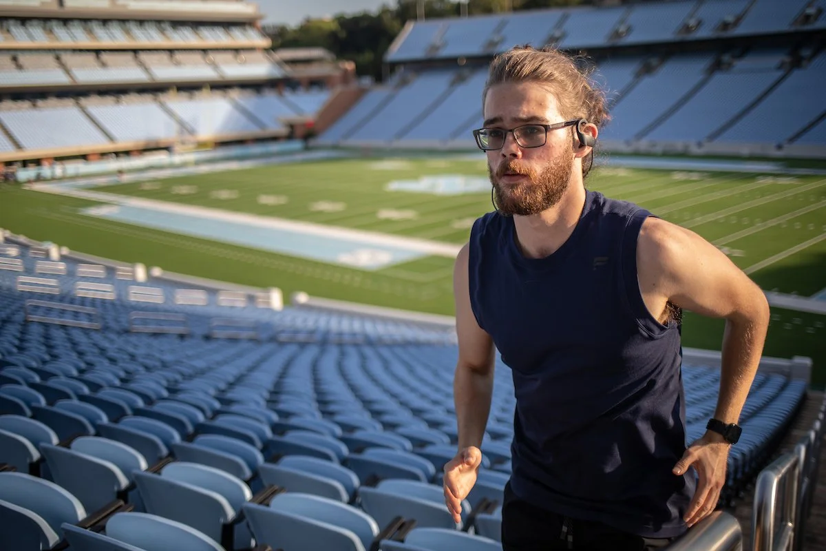 Page’s Tyrone Ashley peeks under a breakaway banner before taking the field against Eastern Guilford on Friday, September 7, 2018 in Greensboro, N.C.